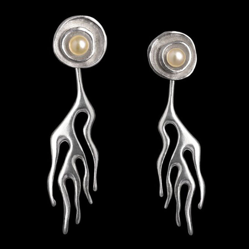 Sargassum é um gênero de alga marinha, presente em todos os oceanos. Preferencialmente elas crescem sobre rochas, e chegam a até 1m de altura. Esta é a inspiração desta joia Simek, representando as folhas da alga e trazendo a delicadeza da pérola em uma peça de design moderno e interessante.